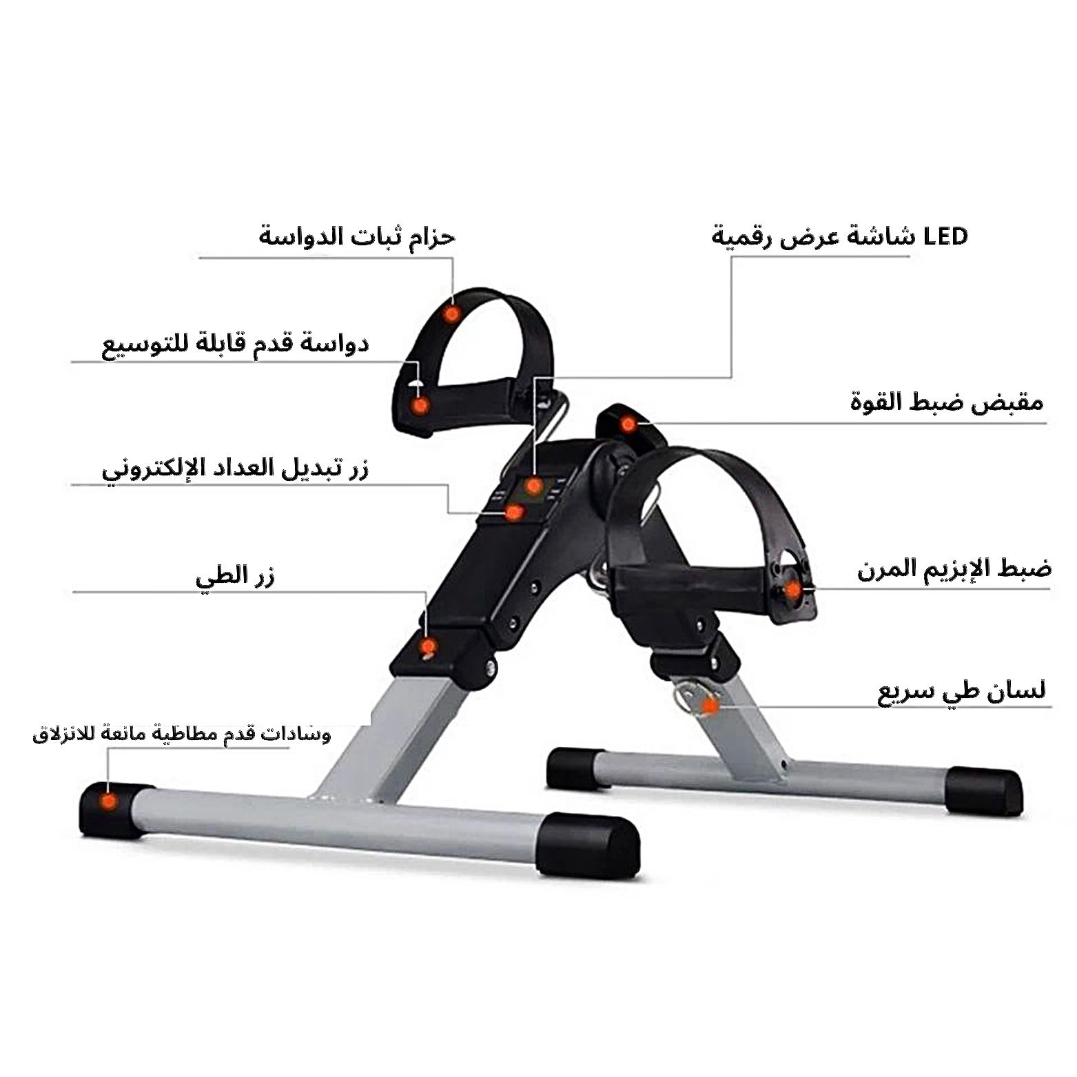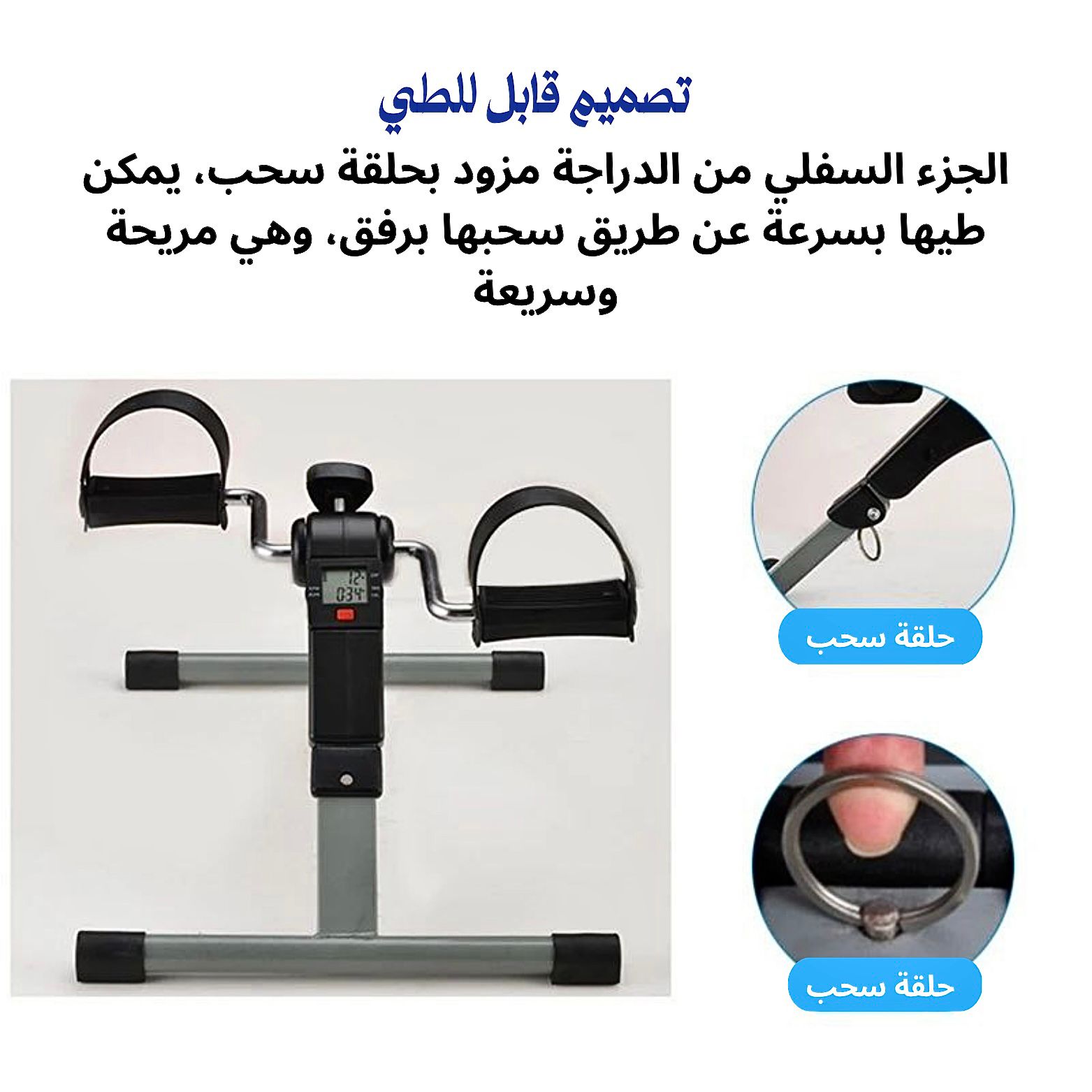 احصل على تمرين فعال في أي وقت ومن أي مكان مع دراجة التمارين المصغّرة القابلة للطي. تتميّز بتصميم مدمج يمكن استخدامه لتقوية عضلات الساقين أو الذراعين أثناء الجلوس على الكرسي أو الأريكة. مزودة بشاشة رقمية LCD تعرض الوقت، عدد الدورات، السعرات الحرارية والمسافة لتتبع أدائك بسهولة. يمكنك تعديل مستوى المقاومة حسب رغبتك بفضل المقبض الدوّار السهل الاستخدام، كما أن الهيكل القابل للطي يجعل تخزينها ونقلها في غاية السهولة. المميزات: تصميم مدمج وخفيف مناسب للاستخدام المنزلي أو المكتبي شاشة رقمية لعرض بيانات التمرين بدقة إمكانية استخدام الدراجة لتقوية الساقين أو الذراعين مقاومة قابلة للتعديل حسب مستوى اللياقة قاعدة ثابتة مانعة للانزلاق لضمان الاستقرار أثناء التمرين