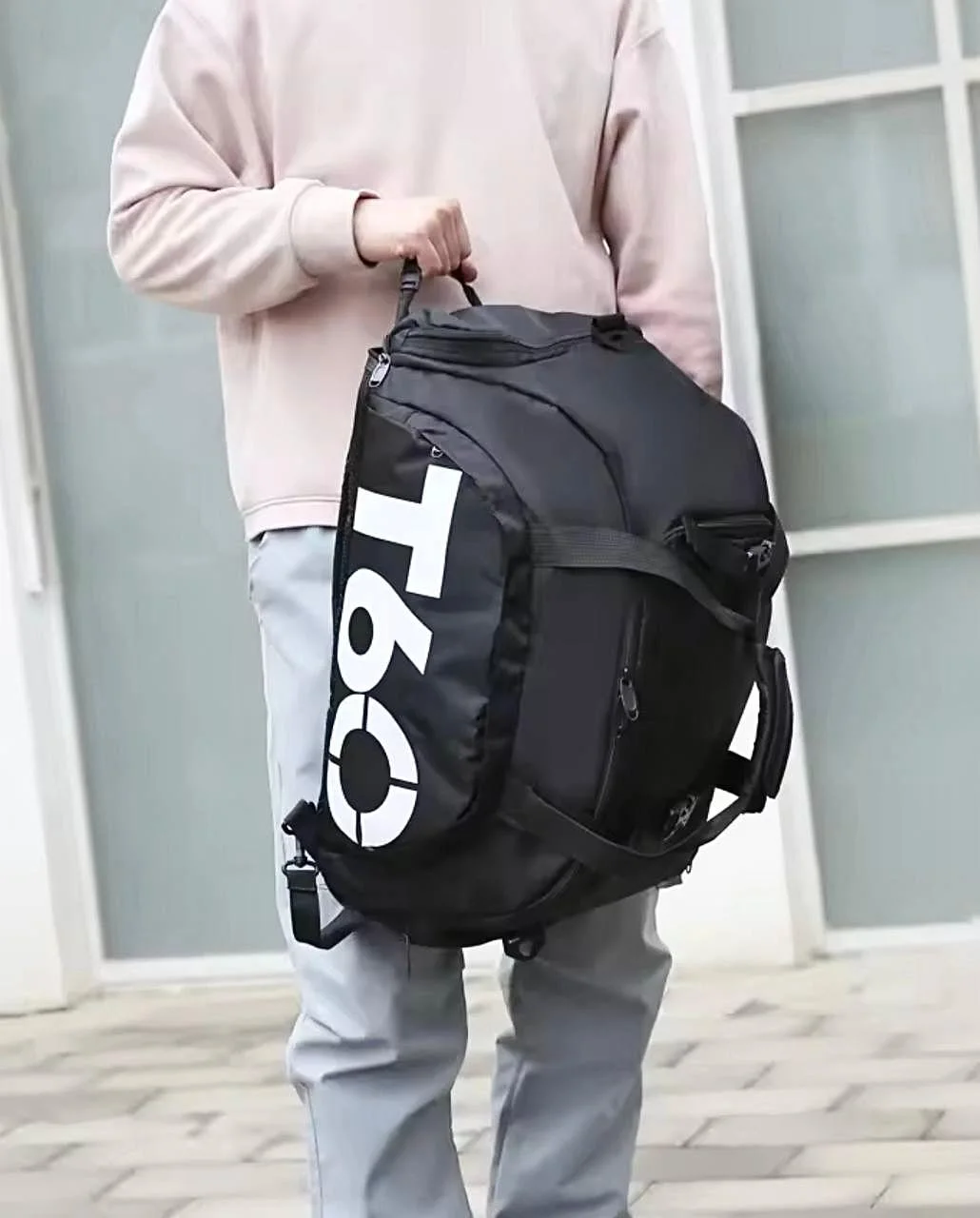 حقيبة T60 هي الحقيبة المثالية لعشّاق الرياضة والسفر. تتميز بتصميم ذكي ومتعدد الوظائف يمكن استخدامه كـ حقيبة يد أو حقيبة كتف أو حقيبة ظهر، لتناسب جميع احتياجاتك اليومية. مصنوعة من مواد مقاومة للماء وعالية الجودة لضمان المتانة وطول العمر، مع سعة داخلية كبيرة لتخزين الملابس، الأحذية، والمستلزمات الشخصية بشكل منظم. كما تحتوي على جيب منفصل للأحذية للحفاظ على نظافة أغراضك، وجيوب جانبية بسحّابات قوية لتسهيل الوصول إلى الأغراض الصغيرة. تتوفر بعدة ألوان أنيقة تناسب جميع الأذواق — لتكون رفيقك العملي في النادي، الرحلات، والسفر